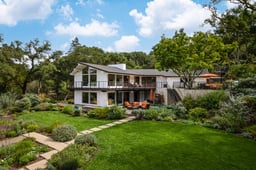 Mid-century modern meets contemporary with this stunning 5 bedroom, 4 bathroom home complete with floor-to-ceiling windows and open floor-plan. The 1.3 acre estate features an oversized-lawn, bocce court, modern fountain, outdoor kitchen, firepit and a mini-Filoli Garden with meandering paths filled with plants that bloom year-round! The remodeled kitchen has cathedral ceilings, a walk-in pantry, large island, Sub-Zero refrigerator and separate full-sized Sub-Zero freezer. Two bedrooms and bathrooms are on the main level (including primary suite), with 3 more bedrooms and a family room downstairs. There's even a separate air-conditioned studio in the yard. The 2-car garage is oversized with parking for 4+ additional cars on the driveway/property at the end of a private cul-de-sac.